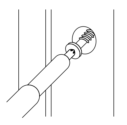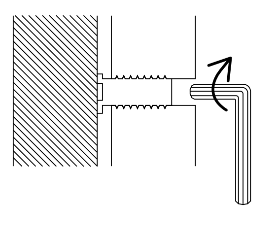 5. Skruva ut karmhylsorna mot vägghålet sidor. Samtliga karmhylsor ska kunna ligga an mot väggen så att man uppnår ett stumt montage. (I de fall karmen inte har förmonterade hylsor ska dessa skruvas in från karmens baksida m.h.a insexnyckel eller montageverktyg från tillverkaren).