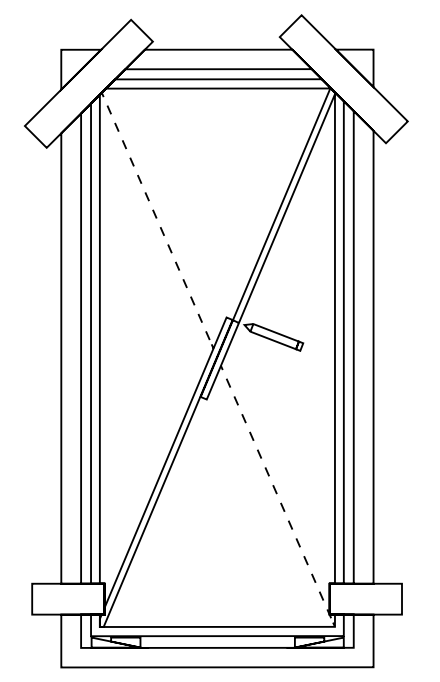7. Kryssmät karmen för att säkerställa att karmen står rätt. Detta är uppnått när båda diagonalmåtten är lika.