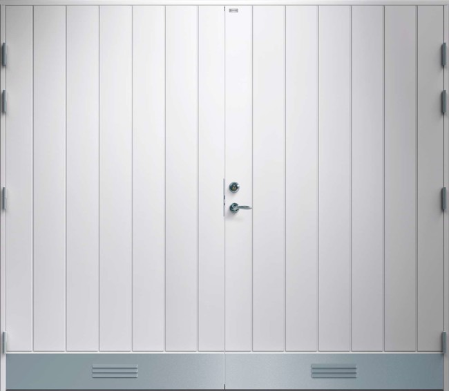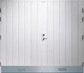 Dekorspårad garagedörr i traditionell stil. Finns i valfri kulör eller konstteak.