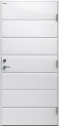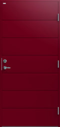 Dekorspårad ytterdörr i traditionell stil med liggande dekor.
