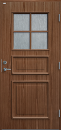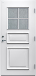 Klassisk ytterdörr med dörrspeglar markerade med lister. Cotswoldsglas beprytt med dekorspröjs. Välj mellan valfri kulör eller konstteak.