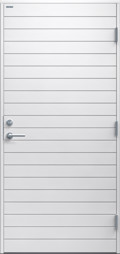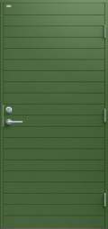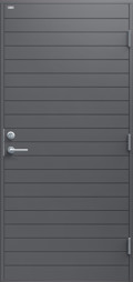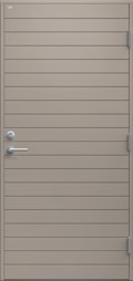 Ytterdörr i modern stil med spårfräst dekor i form av liggande panel. Finns i ek, konstteak eller kulör.