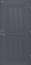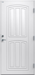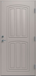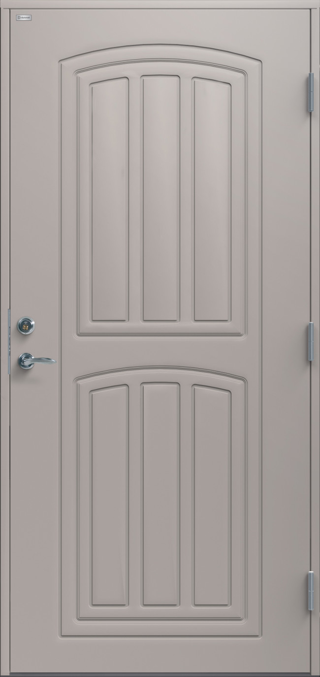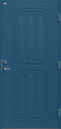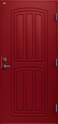 Ytterdörr i traditionell stil med spårfräst dekor.