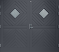 Garagedörr i traditionell stil med diagonal panel i form av spårfräst dekor samt två cotswoldglas. Välj mellan valfri kulör eller furu.